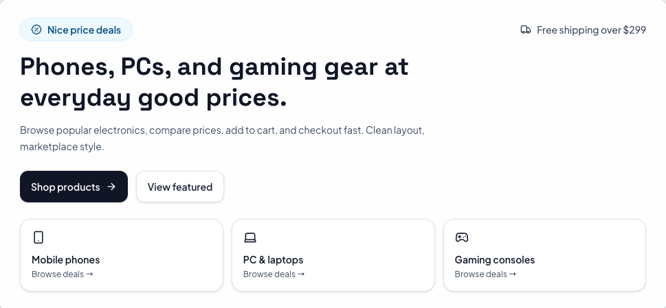 Styling: A clean, marketplace-style layout that is fully responsive across mobile, tablet, and desktop devices.
